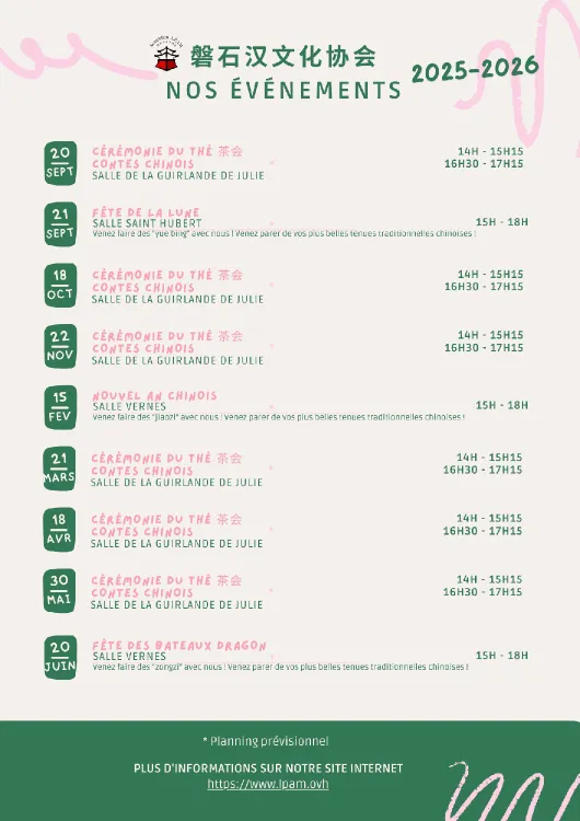 Pour la première fois depuis sa création, l'association vous propose de partager un moment ensemble à l'occasion du Nouvel An Chinois. L'année 2025 l'année du Serpent de Bois dans le zodiaque chinois.…